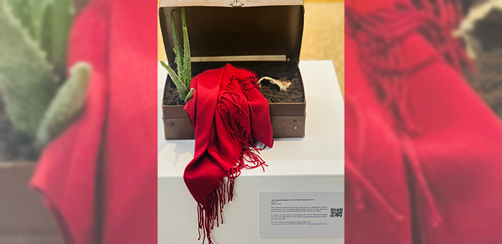 Image: Bahara's suitcase from 2023's exhibition The Suitcase, featuring a plant grown in the soil of her homeland